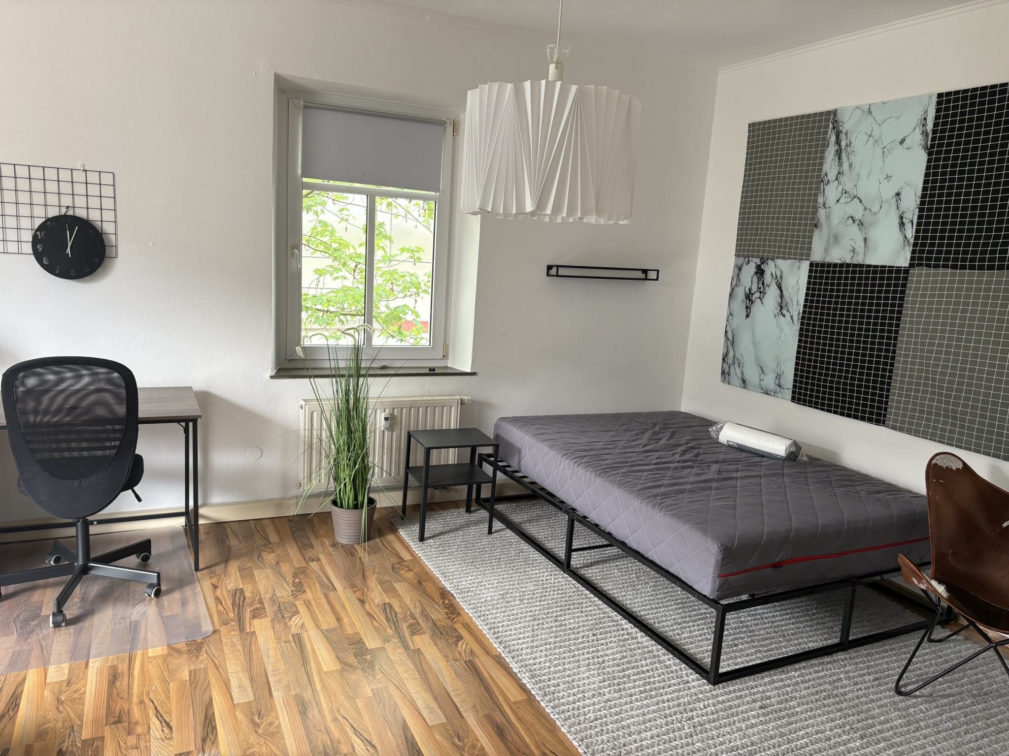 - Zimmer 2 mit großzügigen 25m2. Mit Erker, typisch für ein Gebäude aud der Jahrhundertwende , verleiht einen charmanten und einladenden Charakter.